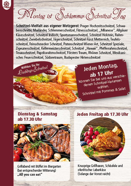 Jeden Freitag ab 17.30 Uhr ofenfrische knusprige Grillhaxen und frischen Fleischkäse zum nach Hause holen oder gerne können Sie von 17.30 Uhr bis 20.00 Uhr einen
